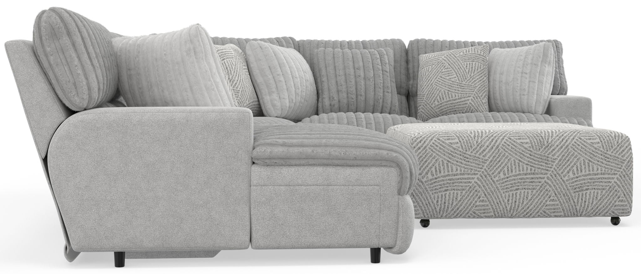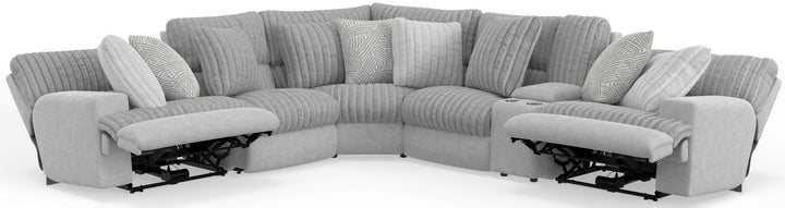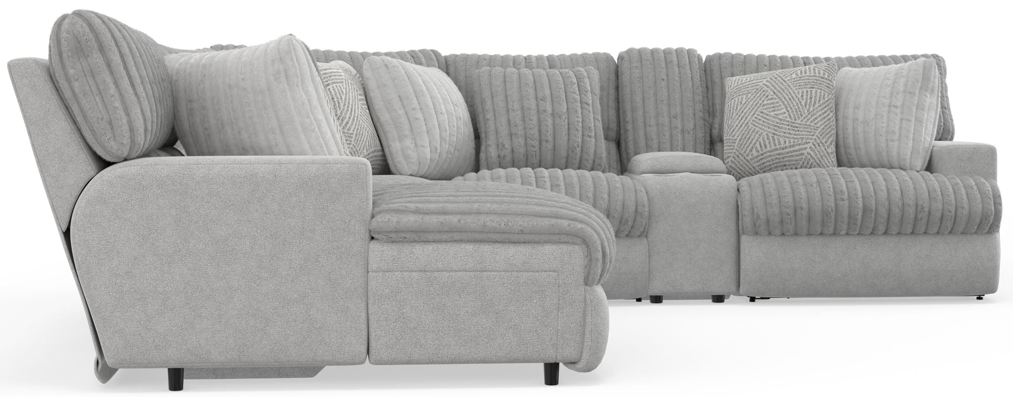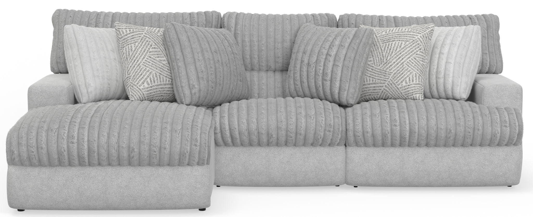 Abraxas is a Modular Reclining Sectional with a contemporary track arm design. A luxurious faux fur fabric and a variety of correlating toss pillows provide added style and seating comfort.