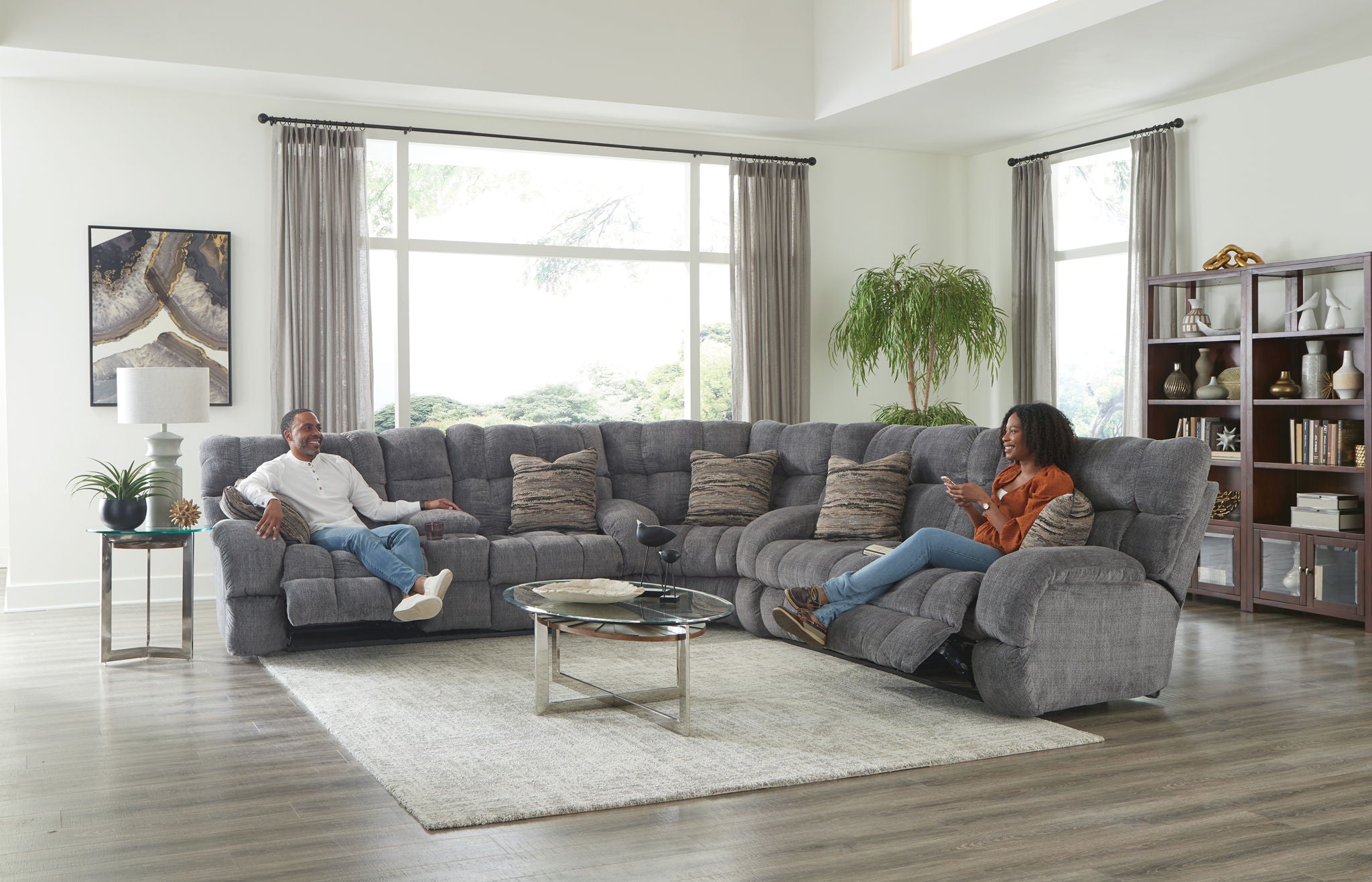 Comfort is king! If you are looking for ultimate comfort in your new sectional look no further. The Ashland reclining sectional is the one! Designed and built for comfort in the USA, the Ashland sectional is bigger, deeper, and softer. The super soft 100% polyester fabric is pleasing to the touch but still durable. The seating is constructed of individually pocketed coils encased in foam and topped with a layer of cool gel infused memory foam then wrapped in a layer of fiber for long term comfort and consistent seating. Featuring 4 lay flat reclining seats, you can really stretch out and relax. Comfort was the focus, but style was not neglected. The Ashland sectional comes with 4 landscape designer accent pillows that aren't only decorative but add to your comfort.