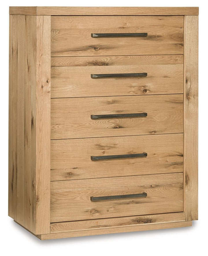 Clean-lined silhouettes and natural materials are harmoniously paired in this chest of drawers. A French oak finish enhances the wood's timeless character, while assorted drawers with a combination of felt and cedar veneer bottoms reflect a careful attention to detail. With artisanal style and refined design, this piece is an artfully crafted approach to modern aesthetics.