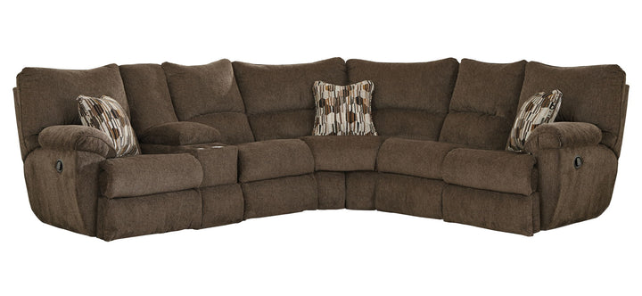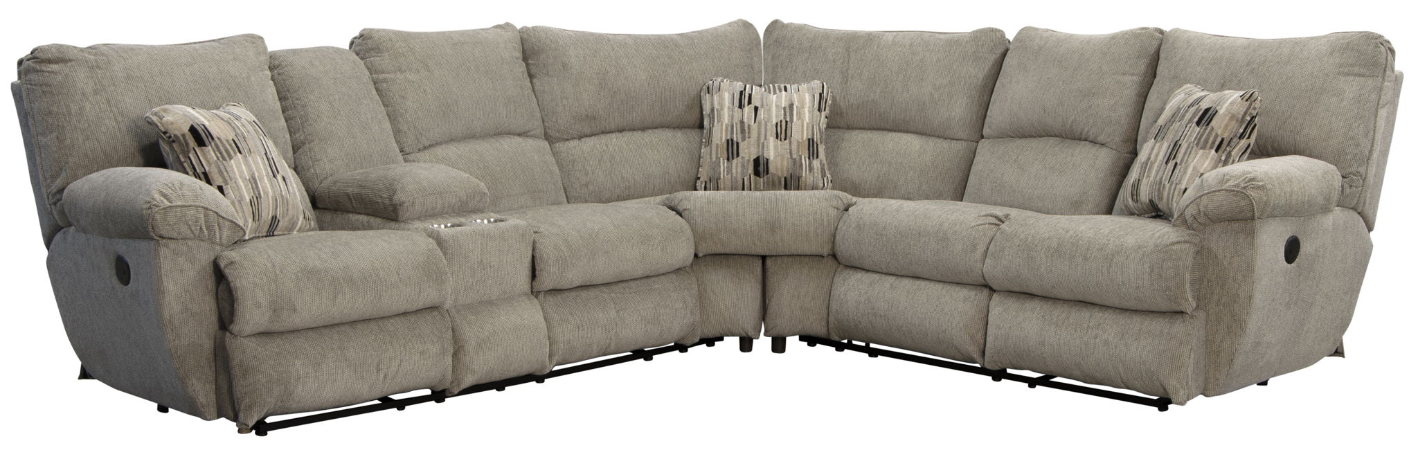 Experience the epitome of comfort and functionality with the Elliott sectional, covered in a soft polyester chenille fabric. Indulge in ultimate relaxation as you recline in one of three power reclining seats that offer personalized comfort at your fingertips. Each seat is constructed of individually pocketed coils encased in foam and topped with a layer of cool gel infused memory foam for the ultimate in seating comfort and consistency. Our sectional is not just about lounging ��� it's about convenience too. Discover a hidden storage console equipped with two convenient cup holders, ensuring your drinks and essentials are always within reach. But that's not all ��� we believe in style as much as substance. Three stylish accent pillows accompany this sectional, elevating your d��cor to the next level. Whether you're hosting friends, spending quality family time, or enjoying a quiet evening, our sectional combines comfort, convenience, and style effortlessly. Elevate your living space with an Elliott sectional that's designed to redefine the way you relax and entertain.
