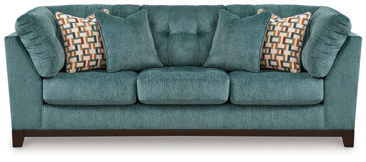 Express your uniquely chic style with this sofa. Its fresh approach to color creates a vibrant yet refined vibe in your living room that friends and family will love to lounge in. And you can count on classic comfort—the sofa’s plush upholstery keeps day-to-day relaxation in mind. A contrasting dark wood trim completes the curated look.