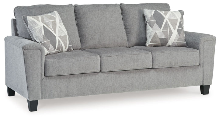 This sofa offers an updated profile and contemporary design. With its stylish design and cozy feel, it's ideal for relaxation and entertainment. Complete with padded arms and welted cushions in a versatile light gray color, this piece seamlessly complements various interiors. And when you thought it couldn't get any better, the accent pillows add a layer of visual dimension, taking it to the next level.