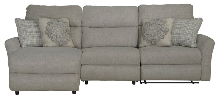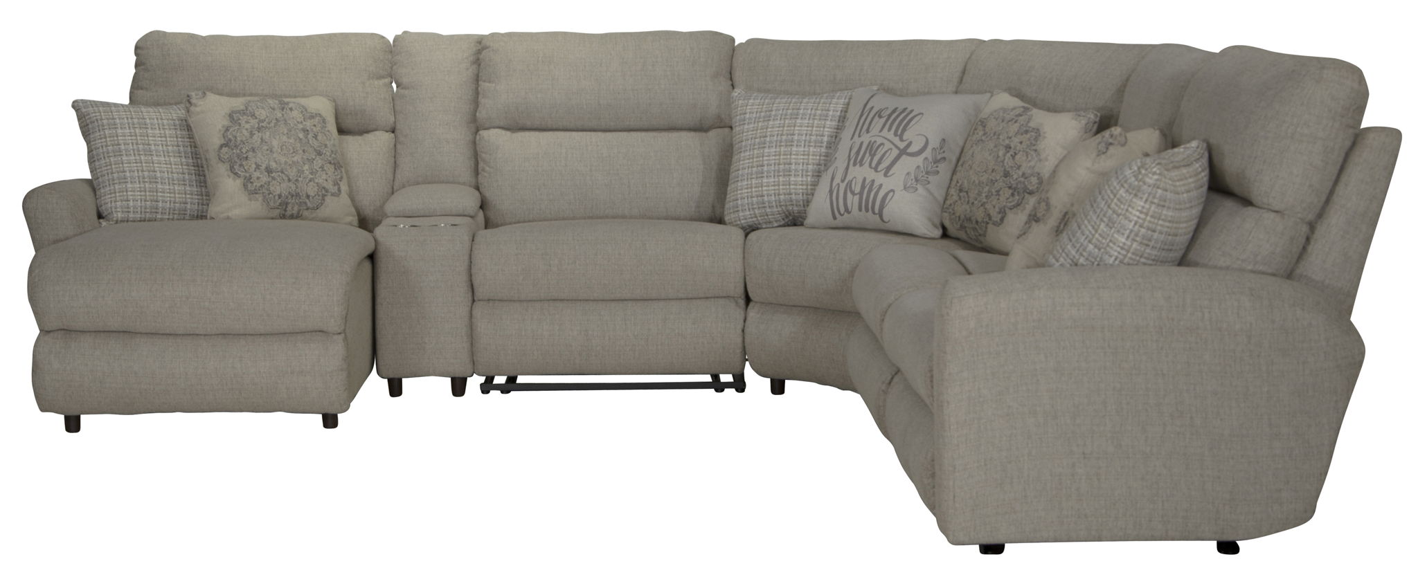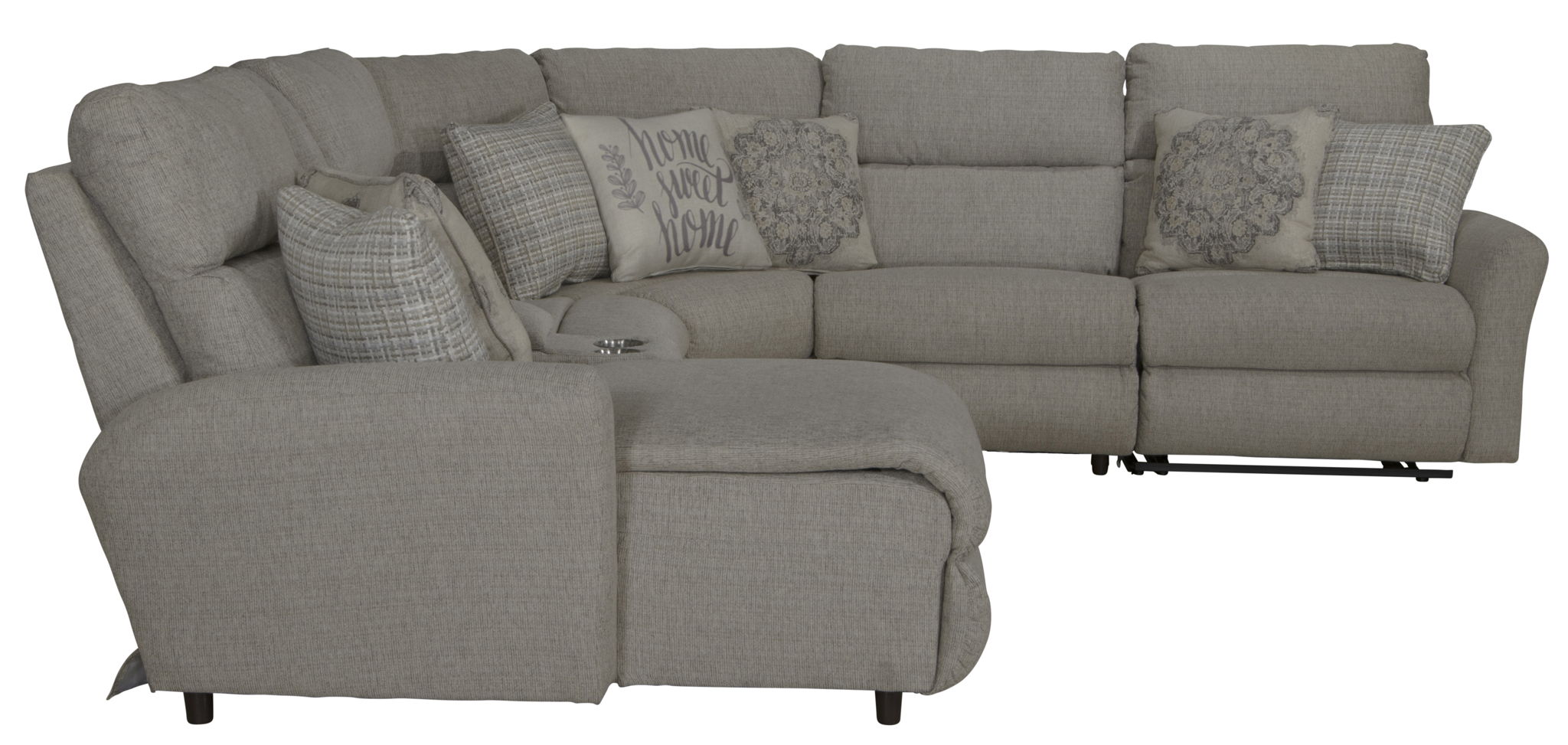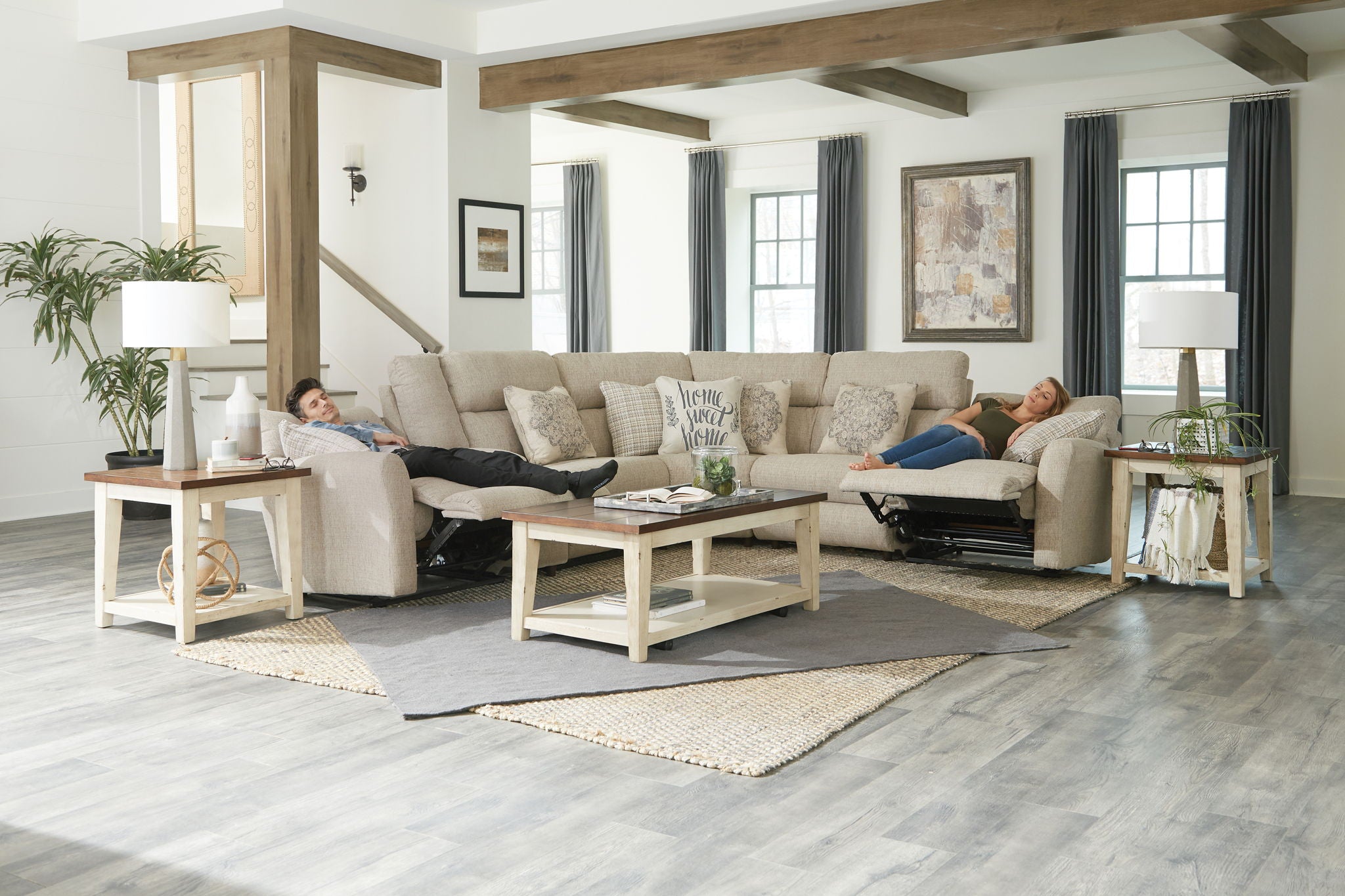 The McPherson contemporary farmhouse reclining sectional brings cozy comfort to any room. Sometimes reclining furniture has comfort but no style but the McPherson has it all! This sectional is covered in a soft textured chenille polyester fabric that is durable and easy to clean. Decorator accent pillows add to the look and comfort. The seating is constructed of individually pocketed coils encased in foam and topped with a layer of cool gel infused memory foam and wrapped in a layer of fiber to create super comfortable and consistent seating experience. Proudly made in the USA the McPherson is designed and constructed to be bigger, deeper and more comfortable. All steel seat boxes are used to add strength to the frame for years of worry free use.