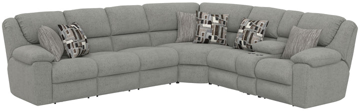 Quinn is a reclining sectional loaded with such as Drop Down Table, Storage Arms, Heat & Massage, USB & USB-C Charging Ports, and convenient LED Lighting. With the added comfort of a Triple Recline Sofa and a variety of toss spillows, Quinn is available in one color: Nature.