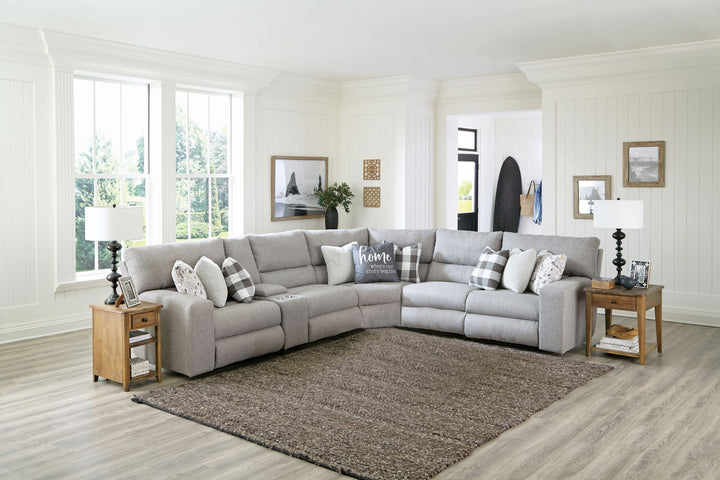 Want to bring style and comfort to your home? The Rockport modular reclining sectional is the perfect fit. The modern farmhouse design features a variety of fashion accent pillows that are included with the set. Comfort was not spared for style in this sectional. Seating constructed of individually pocketed coils encased in foam and topped with a layer of cool gel infused memory foam creates a seat that is comfortable, supportive and provides a long lasting consistent seating experience. The Rockport was designed and constructed in the USA to be bigger, deeper and more comfortable.