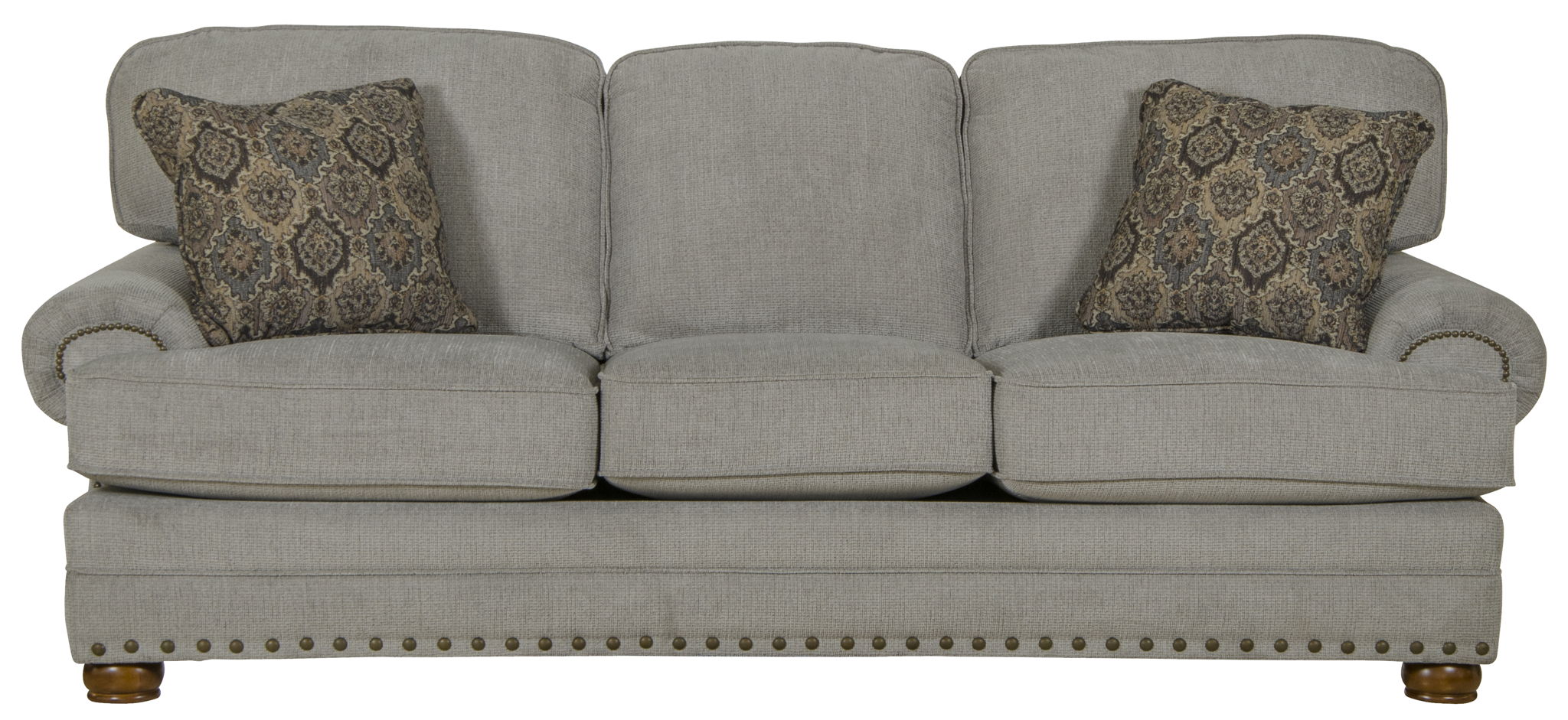 SINGLETARY is a Classic Traditional design in a soft chenille with turned wooden leg and decorative nail accent details.