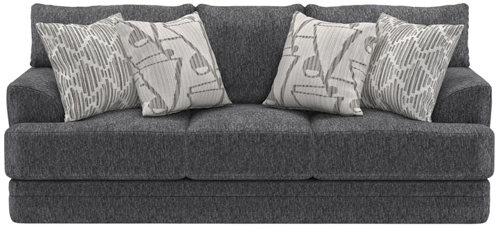 Tyson features the ultimate comfort of our Cuddler Cushion and features an interesting "shark fin" arm detail. With a variety of coordinating toss pillows, this stationary sofa group is available in your choice of two colors: Hazel or Slate.