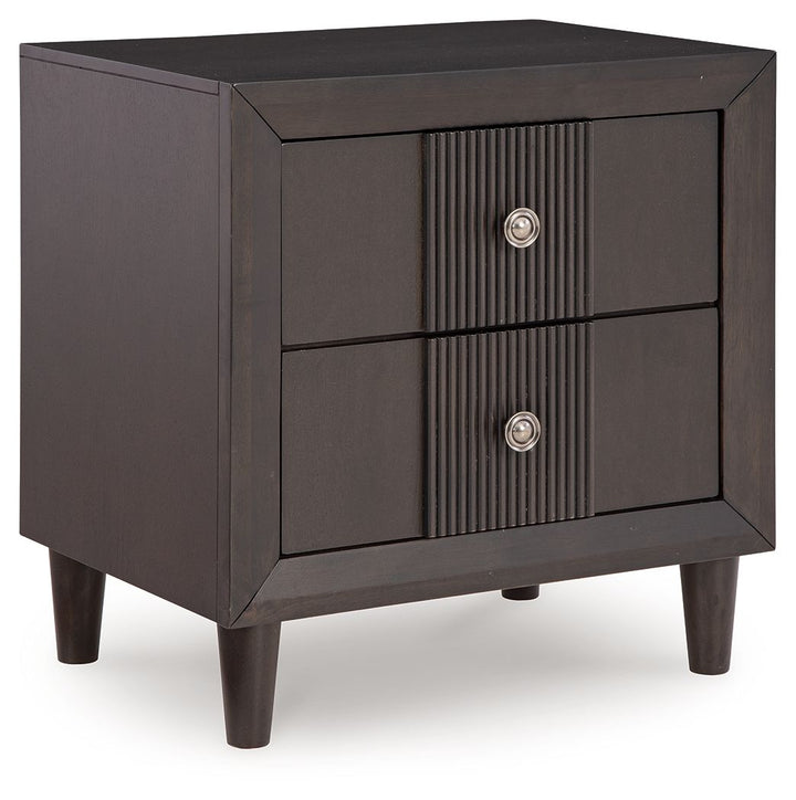 Master the art of metropolitan living. Crafted with posh practicality in mind, this nightstand stores bedside essentials in striking fashion. A chic reeded accent delivers effortless textural interest. Adding this piece to your existing collection? The warm dark brown hue welcomes a variety of style pairings, from casual to urban contemporary.
