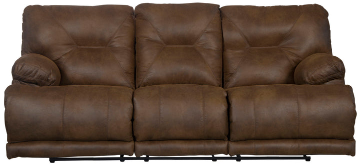 Voyager - Fabric Power Lay Flat Reclining Sofa With 3 Recliners And Drop Down Table - Brandy 88.0"W x 42.0"D x 40.0"H - 250.0 lb