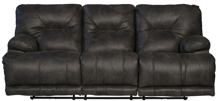 Voyager - Fabric Power Lay Flat Reclining Sofa With 3 Recliners And Drop Down Table - Slate 88.0"W x 42.0"D x 40.0"H - 250.0 lb